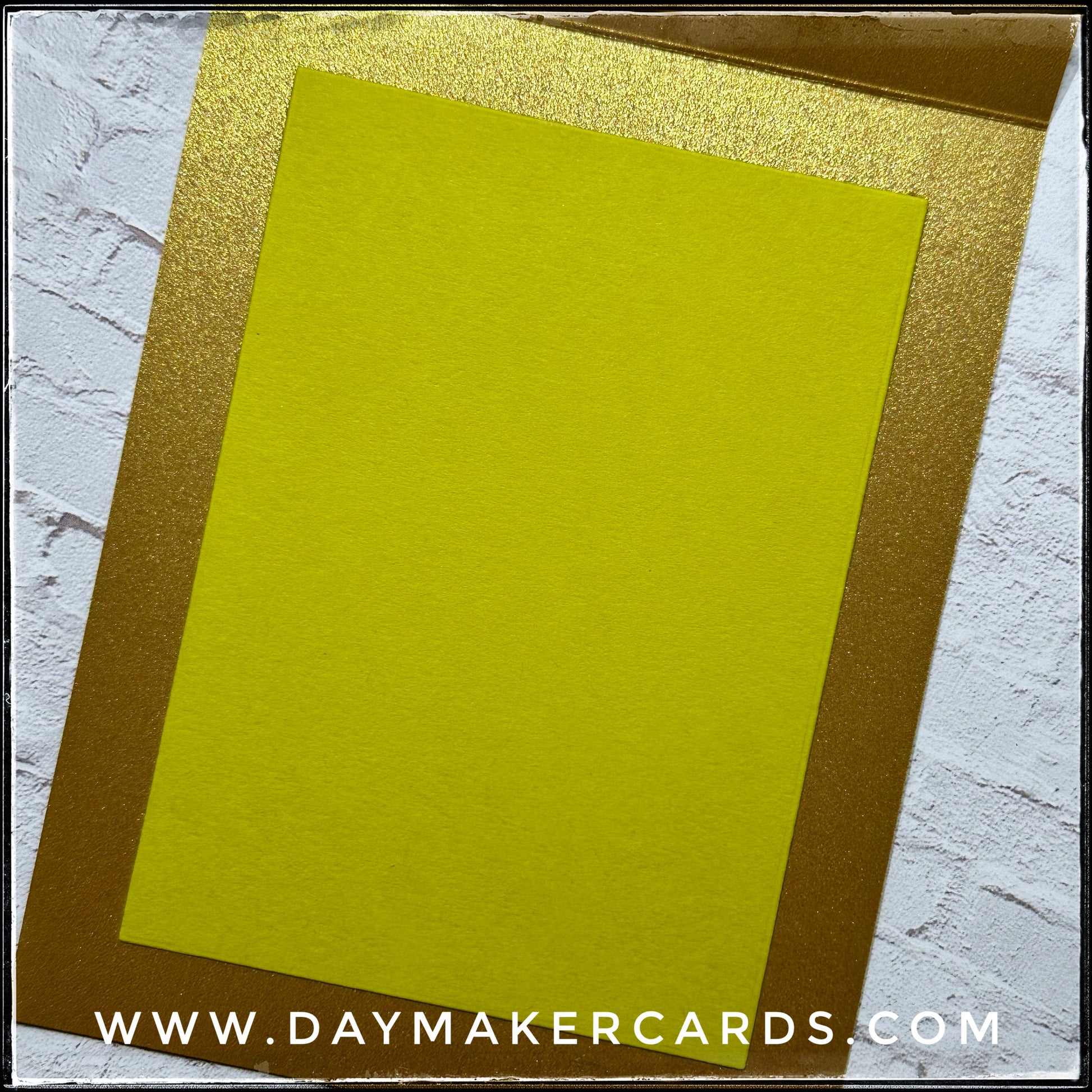 The cards are A2 sized and measure 4.25 x 5.5 inches. The card bases are metallic gold and the interiors coordinate with the front design and are either pale pink, sorbet pink, poppy red, lemongrass yellow-green, avocado green or evergreen. The interiors of the cards are blank with plenty of space for your personal message. One white envelope is included with each card. Each card is shipped in a clear protective sleeve and the set is wrapped with stretchy black cording.