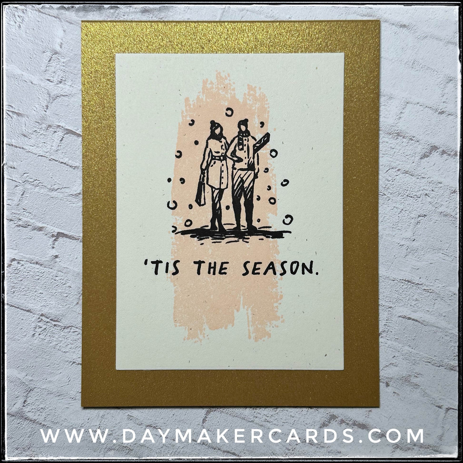 - a couple walking in the snow, "'tis the season" and pale pink nectar
