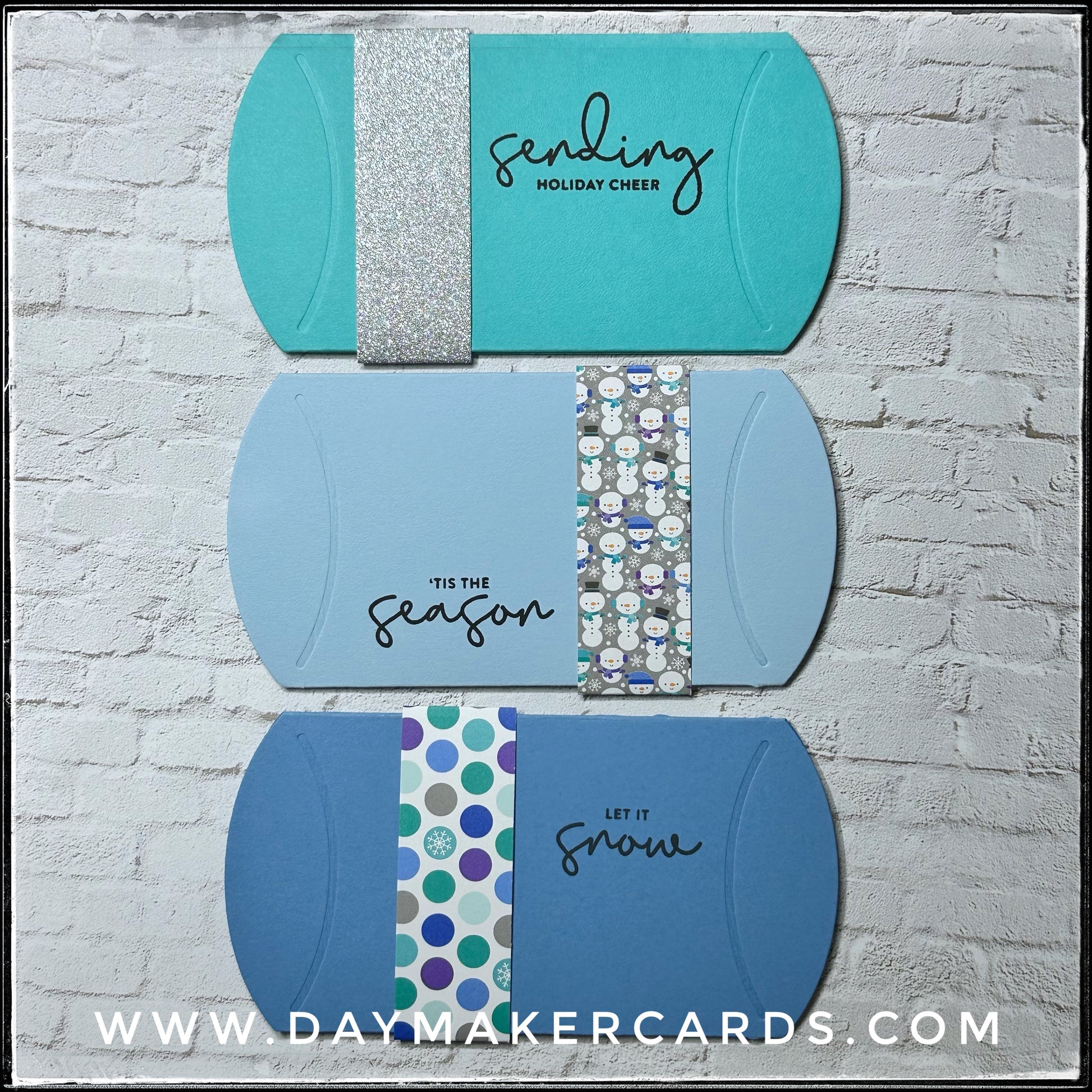 These fun pillowboxes are ideal for holding a gift card or small fun-sized candy bars.